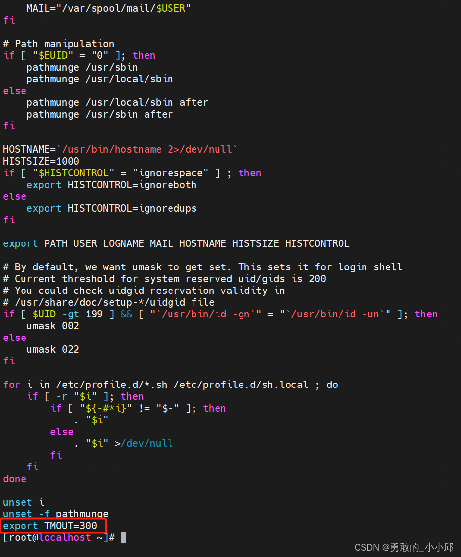 readonly TMOUT # 将值设置为readonly 防止用户更改,在shell中无法修改TMOUT